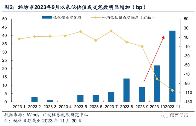 与此同时,潍坊市城投债自10月以来低估值成交笔数明显增加,11月成交平均低于估值超过100bp。