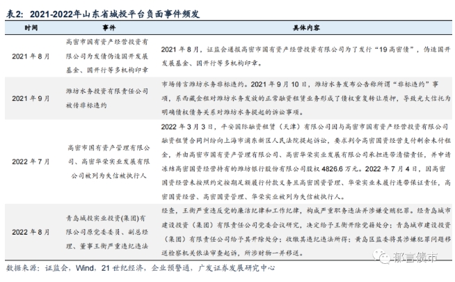 2022年,山东省城投负面事件范围进一步扩大到青岛等市的城投平台。