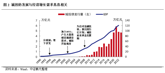 城投企业在地方政府政策支持下逐渐发展。在2001年加入世界贸易组织以后,中国经济进入全新的高速发展阶段,国内产生了大量的基础设施建设需求,城投和城投债开始萌芽;2008年发生全球金融危机,为应对经济下行压力,我国推出四万亿刺激计划,进一步扩大内需,促进经济平稳较快增长,基础设施建设扛起了稳定经济增长的大旗,城投正式迎来黄金发展期。