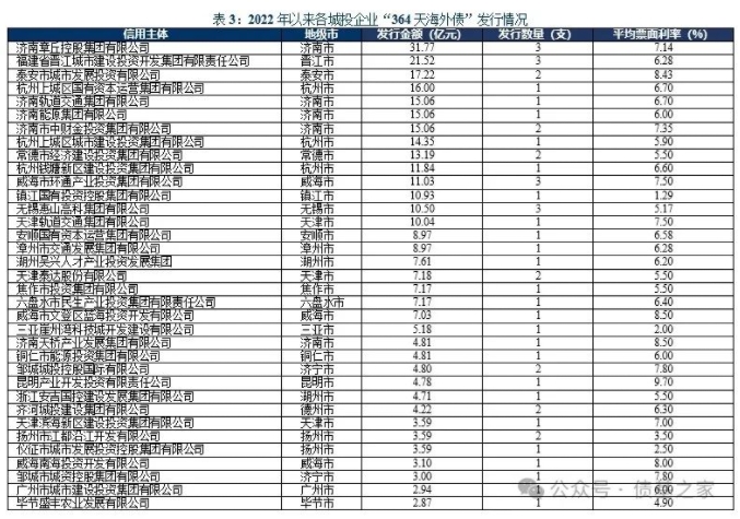 融资成本方面,昆明最高平均票面利率分别为9.70%,随后就是山东的泰安市、潍坊市、济宁市和德州市,平均票面利率分别为8.43%、8.37%、7.82%和7.80%。要知道此时境内债的票面利率已经低至4%左右。