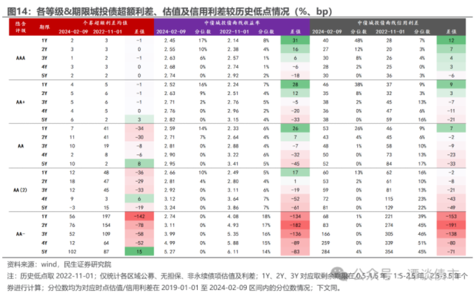 我们对比当前(2024-02-09)和理财赎回潮前(2022-11-01)的城投债超额利差情况: