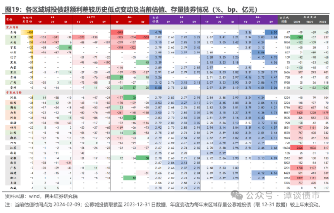 此类区域存量公募城投债规模不小,当前区域整体估值水平不算高,对应超额利差水平亦不高,且当前超额利差较此前低点水平的压缩幅度亦不算大。