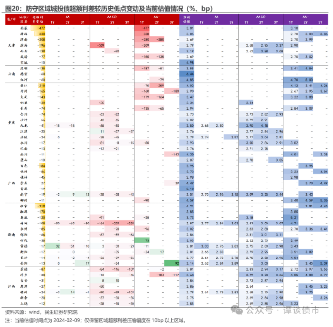 此类区域虽然在此轮化债行情中超额利差的压缩幅度不算低,但对比之下,区域当前存续债券估值尚属偏高,仍有一定的压缩空间,但或许都需要拉长一定的久期。