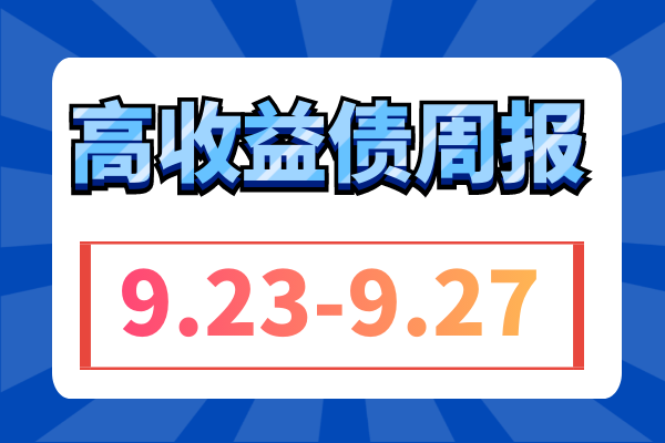 上周(9月23日-9月27日),信用债高收益成交总规模862.09E,较此前一周(9月18日-9月20日成交总量469.08E)增长83.78%;其中,城投板块成交规模651.64E,环比上升83.95%,占总成交规模的比重75.59%;地产板块成交量43.60E,环比上升171.89%,占总成交规模的比重5.06%;其他产业债成交量166.85E,环比上升68.88%,占总成交规模的比重19.35%。