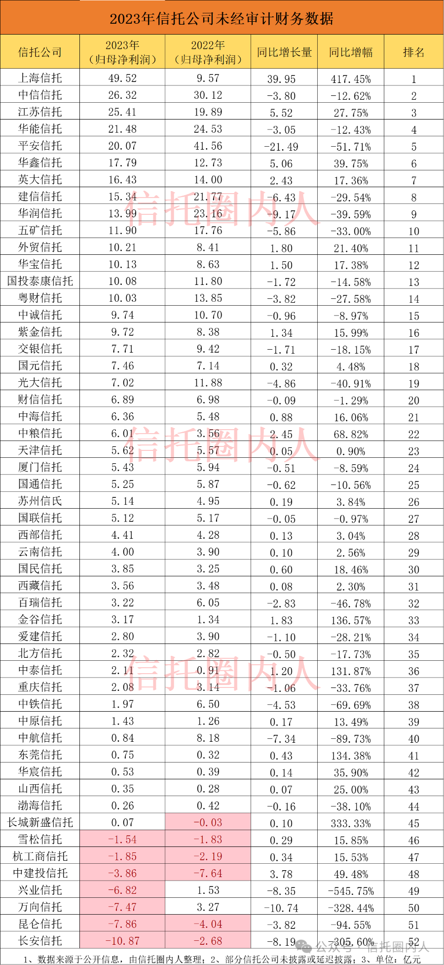 截止2024年1月16日,已有52家信托公司在银行间市场陆续披露2023年未经审计的经营数据。15家信托公司尚未公布。