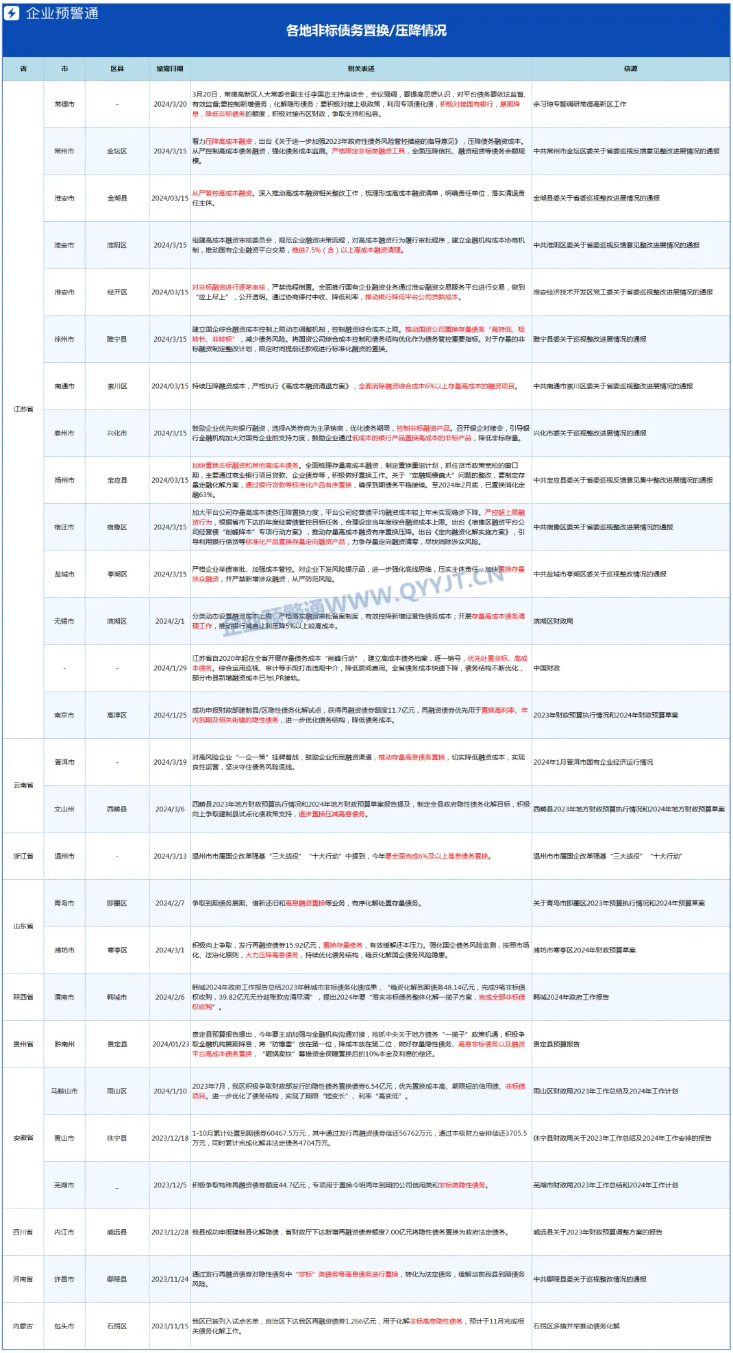 2月7日,青岛市即墨区,在《关于青岛市即墨区2023年预算执行情况和2024年预算草案》中表示,争取到期债务展期、借新还旧和高息融资置换等业务,有序化解处置存量债务。