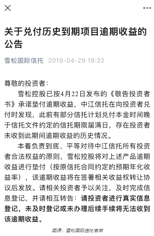 雪松信托的前身是中江信托,2018年,中江信托产品爆雷,于是雪松控股受让中江信托71.3%的股权,成为中江信托新的控股股东,并在2019年6月更名为雪松信托。