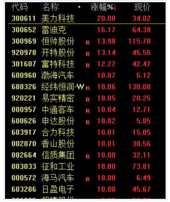 汽车整车股大涨,中通客车、海马汽车涨停。