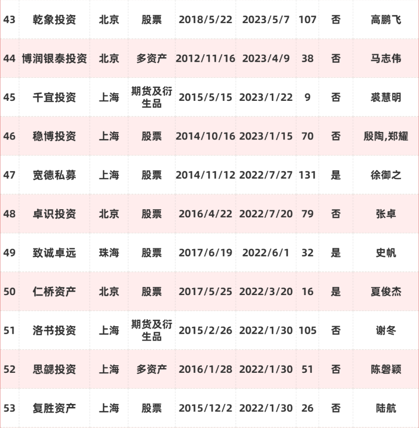 另外,外资私募—腾胜投资成立于2019年9月,是Two Sigma在中国的全资子公司,公司管理规模曾在2021年突破20亿、2022年突破50亿、今年1月份成功突破百亿规模。这标志着继桥水(中国)之后,又一家外资私募巨头在中国市场站稳了脚跟。