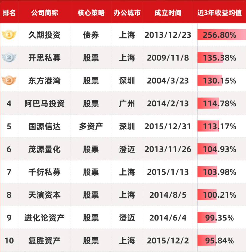 近3年:开思私募、东方港湾领衔!新进百亿国源信达上榜!