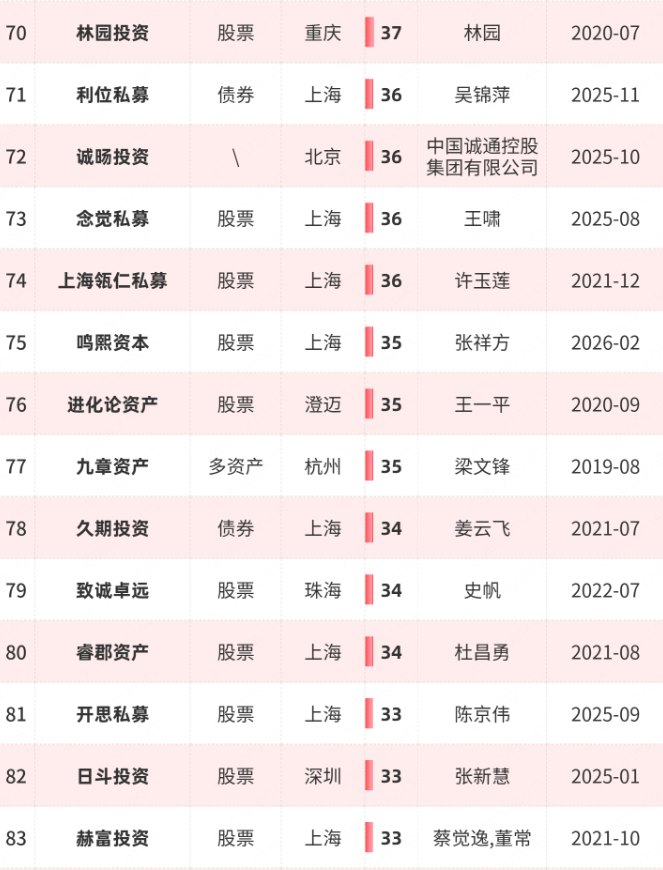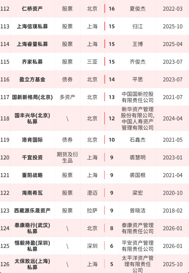 从2月新晋的私募来看,鸣熙资本、上海合骥私募、托特(三亚)私募均以股票策略为核心;其中,鸣熙资本、上海合骥私募办公城市在上海,托特(三亚)私募在北京。如果算上1月新晋的8家百亿私募,2026年的短短两个月内,百亿私募阵营已经出现了11家“新面孔”。