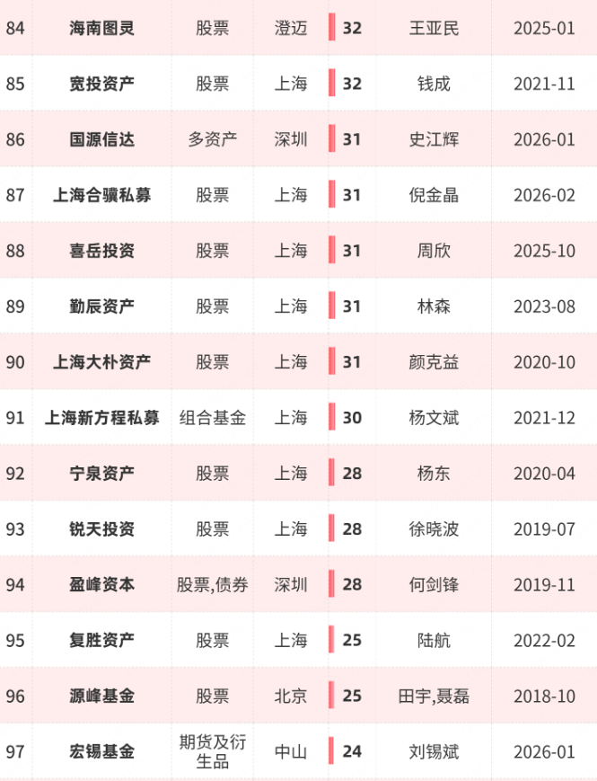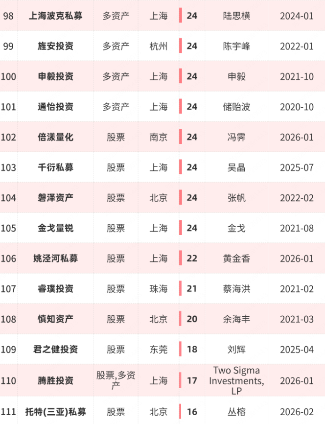 接下来,笔者将为大家盘点:百亿私募的最新全名单、2026年新晋百亿私募、近1年员工人数至少增长10人的百亿私募、突破百亿时间超过5年的私募。(注:以下业绩数据净值截至2026年2月底)