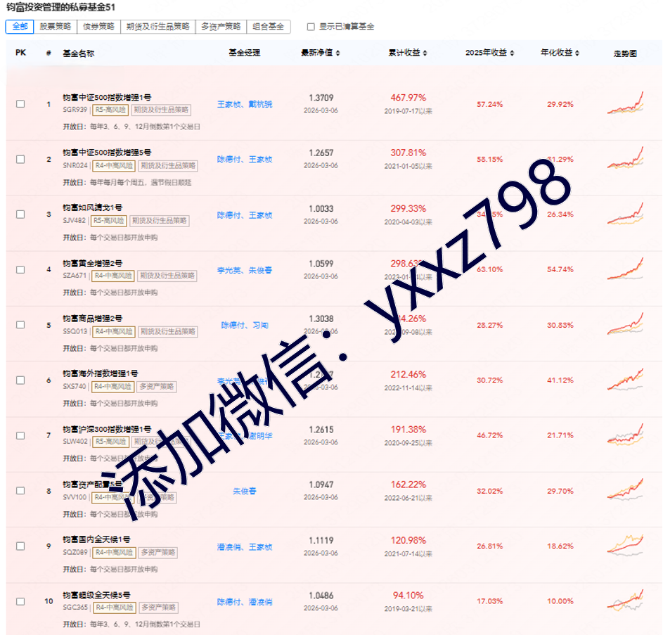 钧富投资主要从事非相关大类资产的组合投资,产品序列主要包括资产配置类、中证500指数增强、沪深300指数增强、期权策略、黄金增强、商品增强、反周期策略、海外指数增强、套利、CTA、全天候策略和债券投资等十二种类型,全面覆盖国内外主流大型证券类资产。头部私募基金,长期跟踪帮助投资人分析市场,根据市场走势配置私募产品,欢迎添加我微信yxxz798
