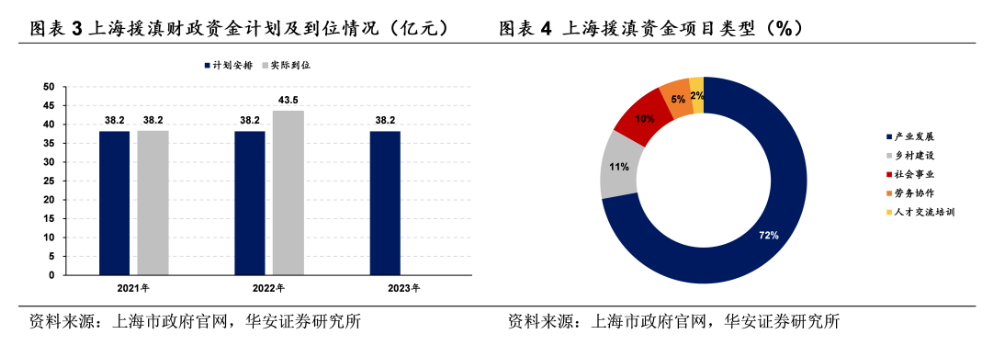 从资金到位情况来看,根据云南省2021年财政决算报告,2021年云南省累计获得上海对口援助帮扶资金38.2亿元,与上海市年初计划基本符合;2022至2023年,上海援滇资金同样计划安排38.18亿元,均与2021年持平,而根据云南省人民政府驻上海办事处官网5月11日文章,2022年全年,上海市援滇财政资金实际到位43.52亿元,超出计划规模14.0%,且2023年计划资金已于4月末前全部到位。