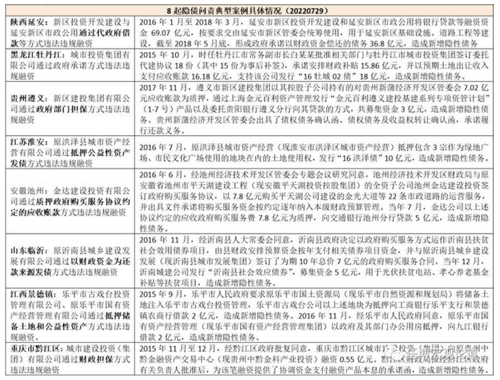 (二)2022年7月:再次通报8起隐性债务问责案例,直指融资平台