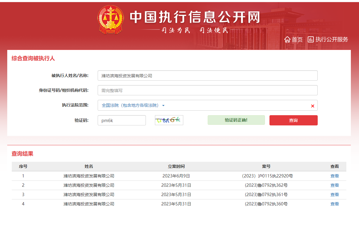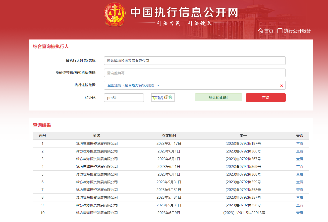 另外,潍坊滨海投资发展有限公司今年以来新增了14条被执行人信息,其中5月31日一天内新增7条。