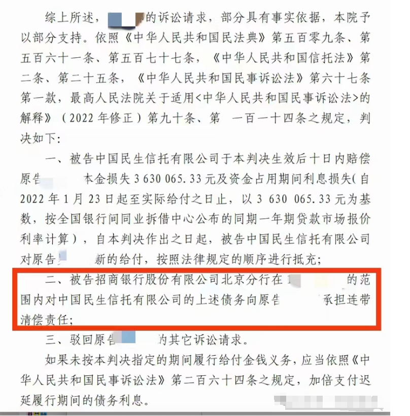 Trust financing近期,北京金融法院对一起信托产品兑付纠纷作出二审判决:不仅要求信托受托人民生信托公司对未兑付债务负责,还判令托管银行对信托公司应付债务的4%承担连带赔偿责任。 值得注意的是,此案例为信托行业首例明确判定托管银行承担比例责任的案件。 国内首例,托管银行承担部分连带责任 案件源于2023年,一位投资者因民生信托“XX1071号”产品出现兑付问题,委托律师进行起诉。与以往多数信托纠纷不同的是,该投资者没有只将信托计划的“直接责任人”——民生信托列为被告,而是一并将该信托计划的托管人——某股份行北京分行告上了法庭,要求两者共同承担赔偿责任。 该案审理过程历时近一年半。一审于2023年10月立案,历经三次开庭,于2024年6月作出一审判决,一审法院在判决中采纳了原告方关于银行存在过错的部分论证,并判令招商银行北京分行对相关损失承担部分连带责任。 后原、被告双方均提起上诉,经北京金融法院两次开庭审理,最终于2025年9月26日作出“维持原判”的终审判决。上海市金融法院二审判决,招商银行需要就光大资本在本案中不能清偿的部分,向投资人吴某承担4%的补充赔偿责任。 案件详细背景:MPS收购“惨案” 1、项目启动: 2016年,暴风集团与光大资本联合发起设立一支并购基金(上海浸鑫基金),旨在收购欧洲顶级体育媒体公司MP & Silva (MPS) 的股权。招商银行作为优先级合伙人,通过旗下“招商财富-招商银行-弘毅夹层基金1号”理财产品出资28亿元。 2、项目失败: 收购完成后不久,MPS公司迅速破产,创始人套现离场,核心体育版权到期,导致收购基金血本无归,52亿元投资款几乎全部损失。 3、纠纷产生: 作为优先级投资人的招商银行,其理财资金面临巨大损失。购买招商银行理财产品的个人投资者,将招商银行、光大资本等告上法庭,要求赔偿其投资损失。 法院判决的核心逻辑与争议点 法院的判决并非简单地判定招商银行“兜底”,而是基于其在整个交易过程中的过错程度来划分责任。 招商银行为何被判承担责任? 1、未能充分揭示风险: 法院认为,招商银行在向投资者销售和推荐该理财产品时,没有充分、清晰地揭示项目的底层风险(即MPS收购项目的巨大风险)。其宣传材料、风险揭示书等文件存在不足,可能导致投资者对风险判断产生偏差。 2、尽职调查存在瑕疵: 作为专业的金融机构,招商银行在投资前的尽职调查工作中存在疏忽,未能及时发现并规避项目的重大风险。 3、主动管理职责未完全履行: 虽然招商银行是优先级投资人,但法院认为其在基金运作过程中,未能完全履行其作为专业金融机构应尽的主动管理和风险监控职责。 为何责任比例是4%?(责任划分) 这是本案最引人深思的地方。法院采用了“过错与责任相适应”的原则: 主要责任方: 法院认定,项目失败的根本原因在于光大资本作为基金管理人和主要操盘手的重大过失和违规操作。例如,在收购时没有与MPS原股东签订竞业禁止协议,这是导致MPS迅速崩盘的关键原因。因此,光大资本承担最主要的赔偿责任。 招商银行的次要责任: 招商银行的过错主要体现在销售推介和事前风控环节,而非项目运营的直接决策者。因此,其责任是补充性和次要性的。 投资者自身责任: 法院也认定,投资者吴某作为具备一定投资经验的个人,对高风险投资应有一定的认知,自身也需承担相应的投资风险。 综合考量各方过错对损害结果的原因力大小,法院最终酌定招商银行承担4%的补充赔偿责任。 该判决的重大意义与市场影响 1、打破“刚性兑付”的里程碑: 这是中国司法实践首次明确“卖者尽责、买者自负”原则的典型案例。它没有让银行对投资损失进行“全赔”,而是根据其过错划分比例,标志着打破“刚性兑付”预期从政策要求走向了司法实践。 2、对金融机构的严厉警示: 判决向所有银行、信托、基金等资管机构发出明确信号:“卖者尽责”是“买者自负”的前提。如果机构在销售、推介、尽职调查、投后管理等环节存在瑕疵,即使法律上没有明确的担保义务,也可能需要承担相应的民事赔偿责任。 3、责任认定的精细化: “4%”这个数字体现了司法审判的精细化。它不再是“非黑即白”的判罚,而是试图通过量化过错程度来公平地划分责任,这为未来处理类似复杂金融纠纷提供了重要参考。 4、保护金融消费者权益: 判决强化了对金融消费者的保护。即使银行只是部分过错,投资者也有权就其过错部分追索赔偿,这增强了投资者通过法律途径维权的信心。 5、对投资者的教育: 判决也提醒所有投资者,任何投资都有风险,不能盲目相信金融机构的背书,必须提高自身的风险识别能力和责任意识。