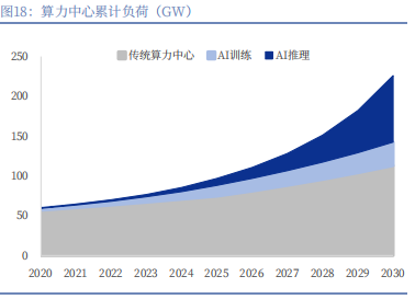 根据国际能源署的测算,现在全球数据中心的总载荷大概是 97GW,到 2030 年可能会涨到 226GW,其中一半都是 AI 数据中心。