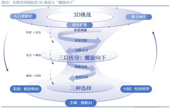 现在的全球宏观环境,已经不是以前那种简单的 “经济好两年、差两年” 的周期波动了,而是进入了一种 “经济 - 社会 - 政治” 相互拖累的 “螺旋向下” 状态。这种状态,彻底改变了铜的定价逻辑。