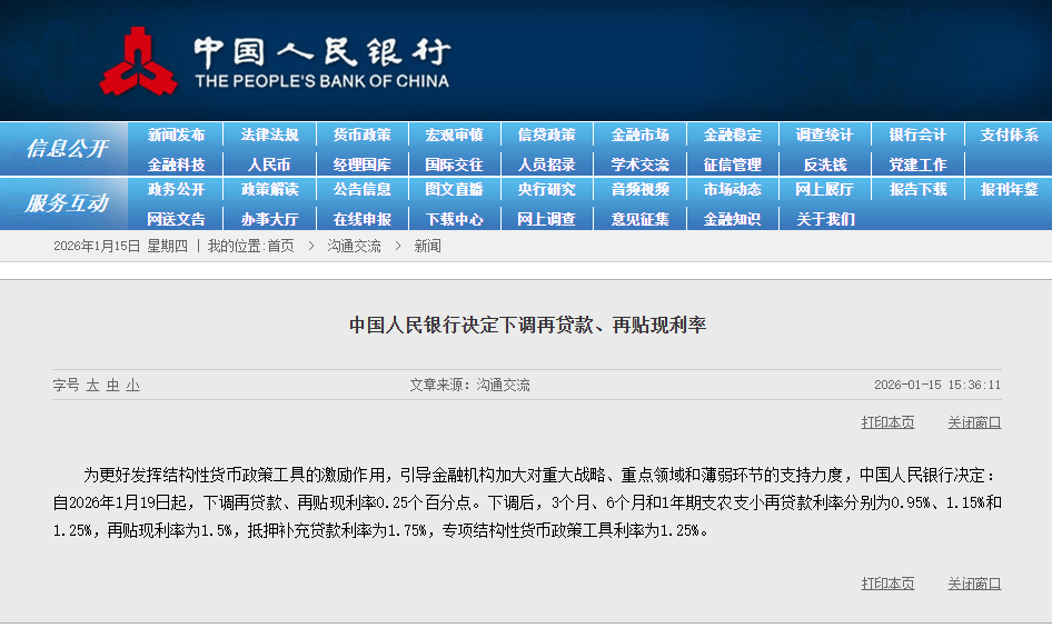 央行又出手稳经济了!这次是针对性的结构性降息,1 月 19 日起正式落地 —— 再贷款、再贴现利率统一下调 0.25 个百分点。这是继 2025 年 5 月之后,央行再次下调这类结构性货币政策工具利率,信号意义十足。对普通人来说,可能觉得 “降息” 离自己有点远,但其实这波操作直接关系到小微企业融资成本、科创企业发展活力,甚至整个经济的复苏节奏。今天就用通俗的话,把这件事讲明白。