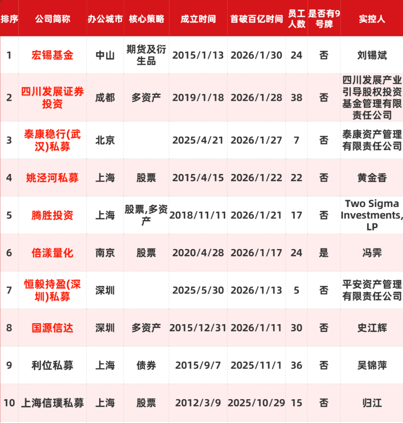 突破历史新高!1月百亿私募新增10家,总数达122家!