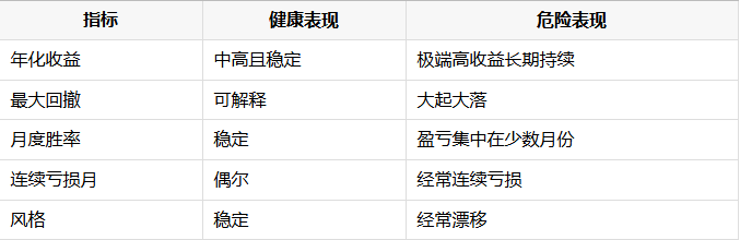 如果出现以下组合,要警惕:规模快速翻倍,收益没有下降,波动没有变化