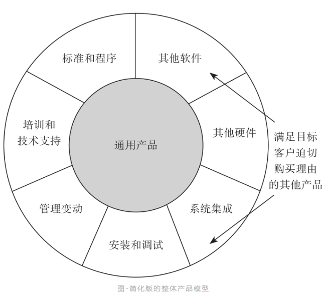 简化版的整体产品模型只有两个部分:①通用产品;②满足目标客户迫切购买理由的其他产品。后者是我们为了成功向客户推销产品所做出的承诺,至于是否兑现,合同上并无要求,但如果要维护良好的客户关系,我们就必须兑现承诺。在B2B市场,如果你不能兑现承诺,后果将不堪设想。