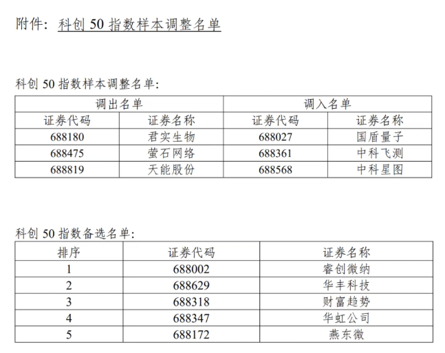 2月27日,上交所和中证指数公司联合发布公告,根据指数编制规则,科创50等科创指数样本每季度进行定期调整,本次调整将于3月13日收市后实施。