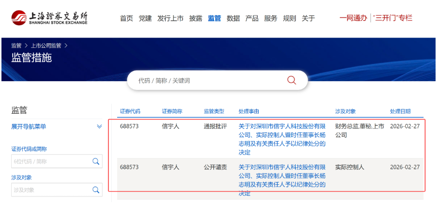 上交所官网昨日(2月27日)发布了对信宇人的两则纪律处分决定。信宇人亦于2月26日晚间发布相关公告。