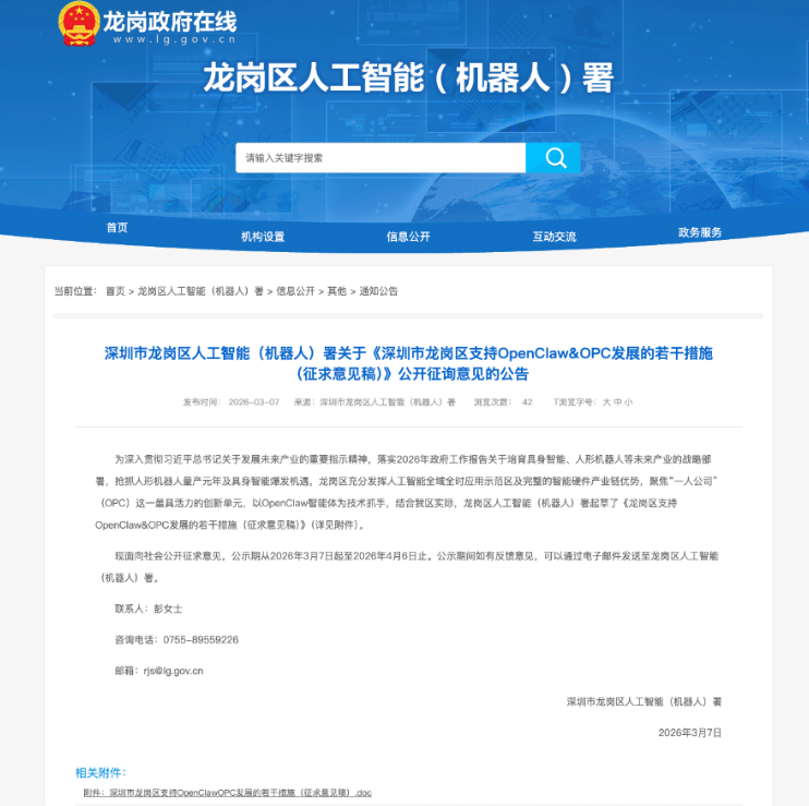 为抢抓智能经济发展机遇,深圳市龙岗区于3月7日发布《深圳市龙岗区支持OpenClaw&OPC发展的若干措施(征求意见稿)》(以下简称:“龙虾十条”),拟以“零成本启动”为核心亮点,面向全球智能体开发者和OPC(One Person Company,一人公司)创业者抛出橄榄枝,打造全球智能体创业首选地。免费帮助投资人进行私募产品分析,100万起投优质产品推荐,欢迎添加微信cwx0163