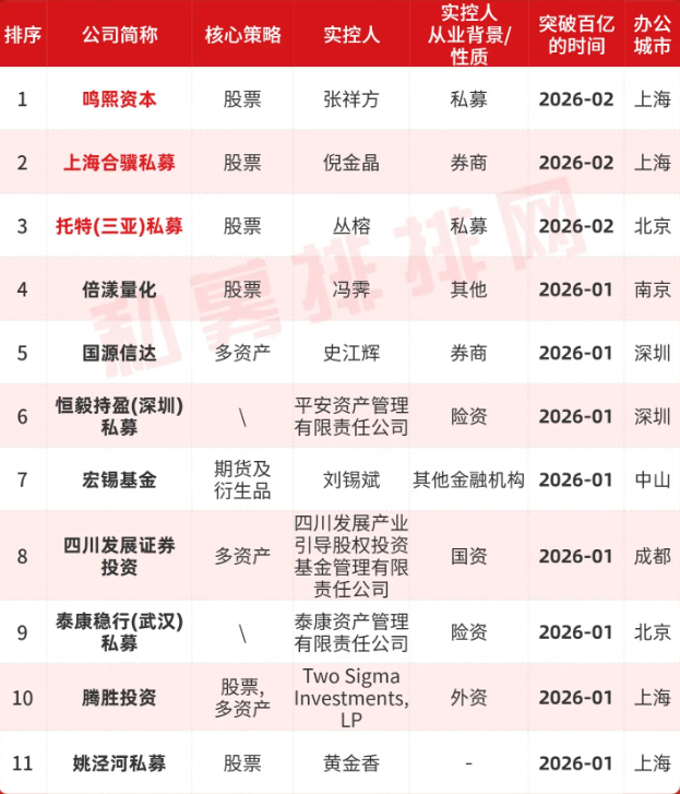 图2:2026年新晋的百亿私募(最新数量:11家)