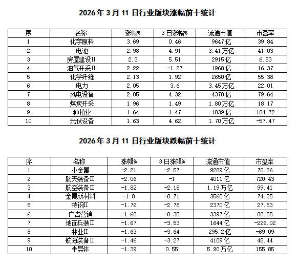 A股3月11日交易指数表现