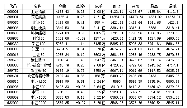 一、核心指数表现概览
